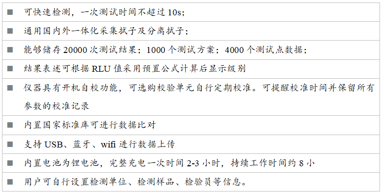 手持式ATP荧光检测仪MC-4021适用于食品加工、餐饮、医疗、卫生、日化、造纸、水处理、环保、水政、海关出入境检疫及其他执法部门等多种行业的清洁度(微生物含量)现场快速检测。